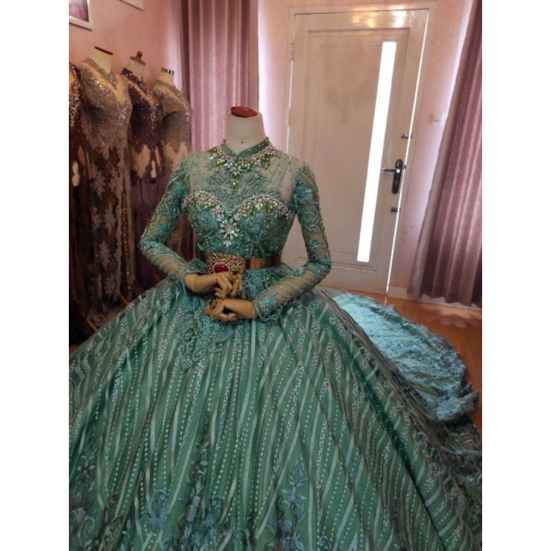Beli gaun pengantin warna hijau wardah size fit to l.